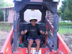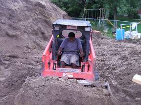 | Getting used to the machinery. | Leaning to operate the skid steer. | ||||