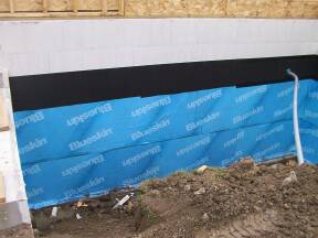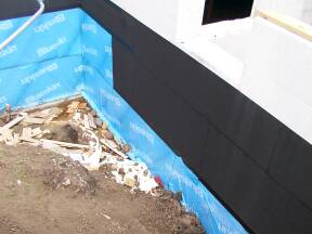 | Photo of damp proofing on inside of garage. | Another damp proofing photo before backfilling. | ||