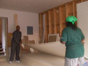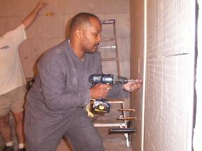 Moving drywall to basement.