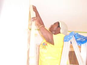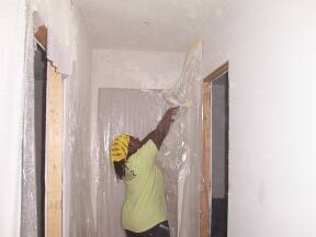 Removing plastic in hall. |