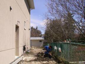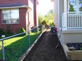 | Backyard graded. | North side of house. | ||