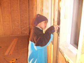 | Two windows in front bedroom installed. | Window in master bedroom installed. | Foaming around door to garage. | ||