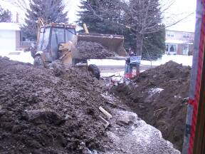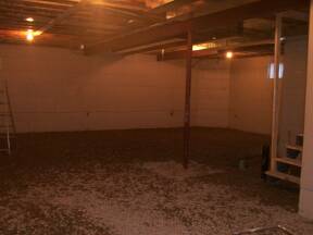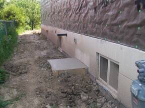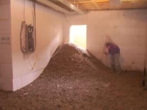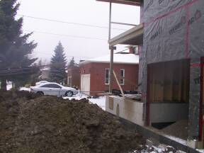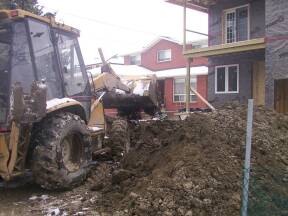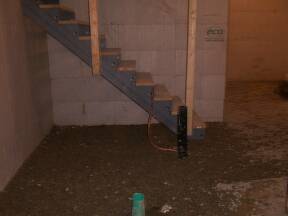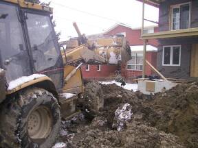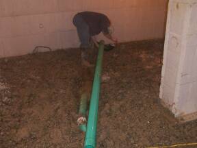 April 8, 2003: Drain & Concrete contractor on site to attach sewer lines and lay drains in basement.