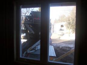 | Slinging extra stone into basement. | View from garage. | View from balcony. | ||