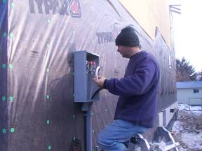 | Installing mini-fridge outlet. | Testing mini-fridge outlet. | ||