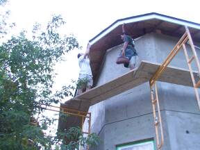 | Measuring piece at front for cutting. | Installing a piece on front gable. | ||
