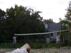 August 30, 2003: Gutter assembly and installation continues.