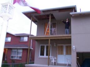 October 17, 2003: Soffit over balcony installed.