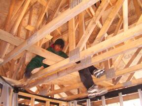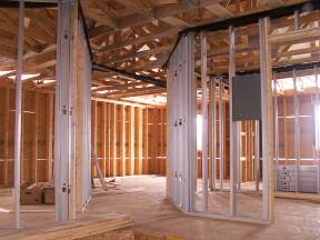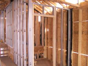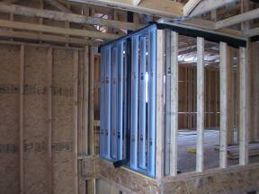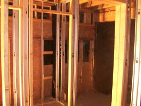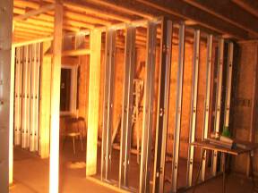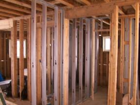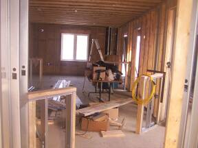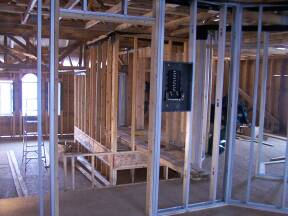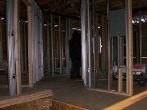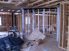December 28, 2002: Pantry, powder room and mudroom steel partition framing underway.
