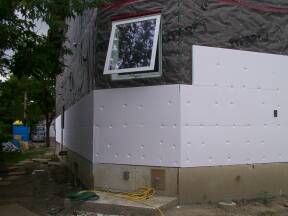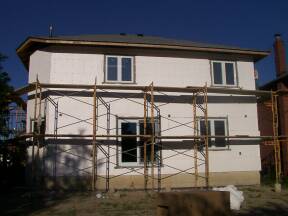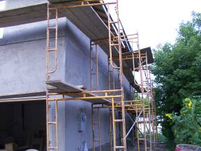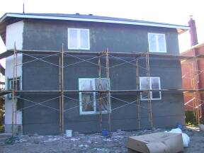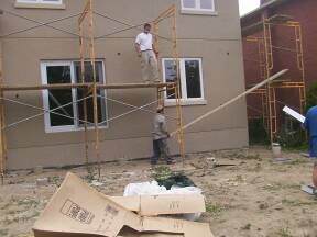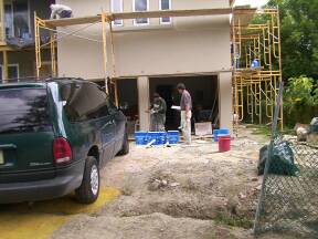 August 18, 2003: Stucco contractor setup and installed styrofoam base.