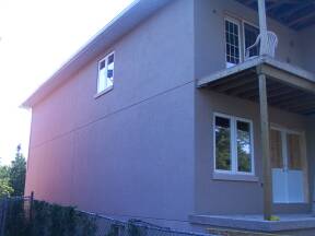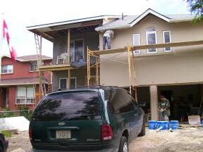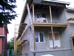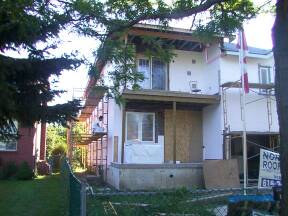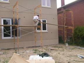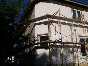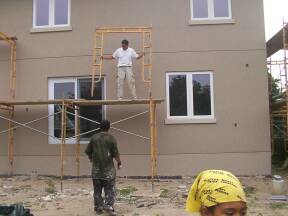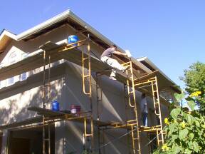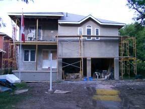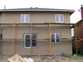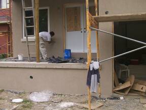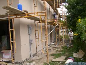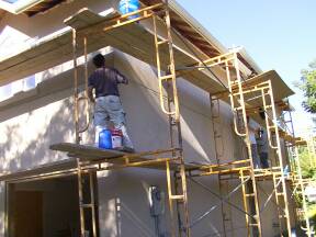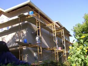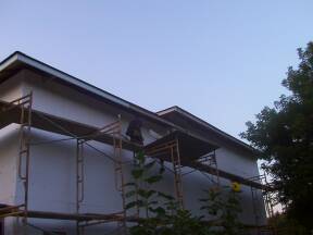 August 30, 2003: Contractor applying finish coat on most of second floor.