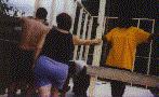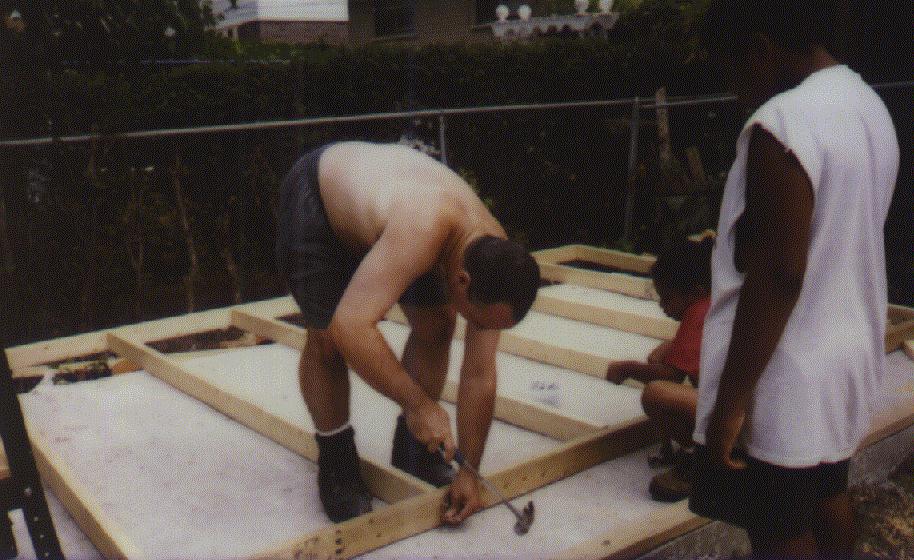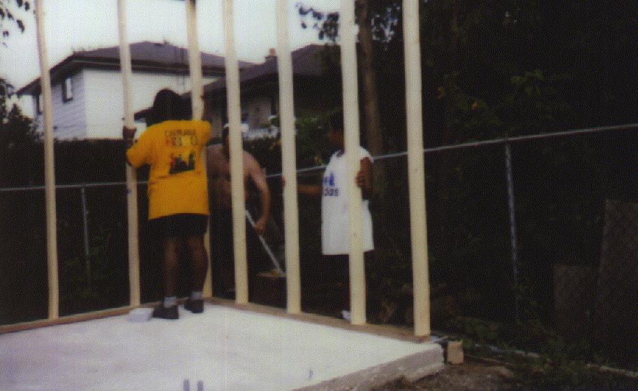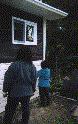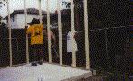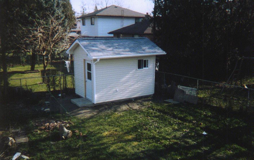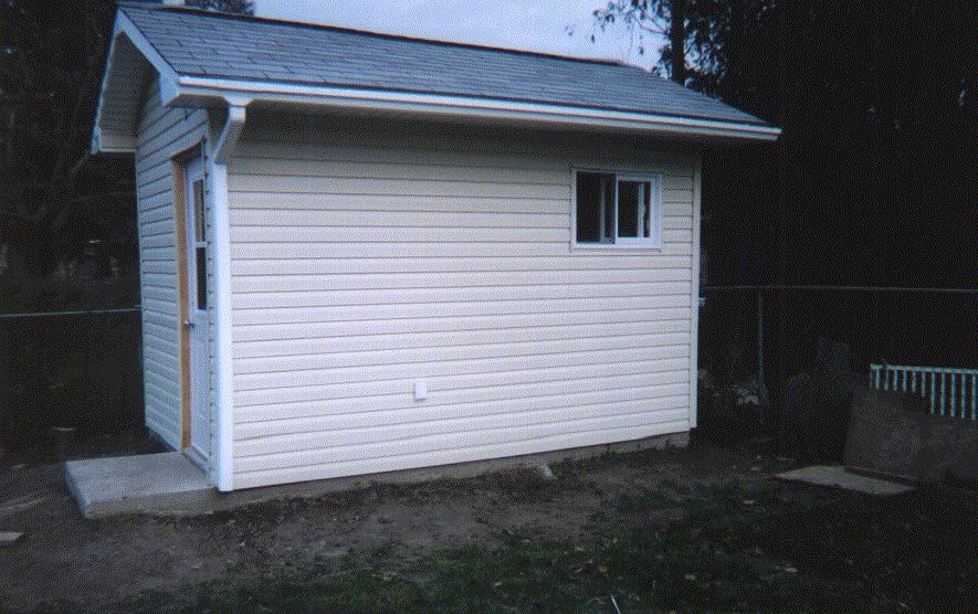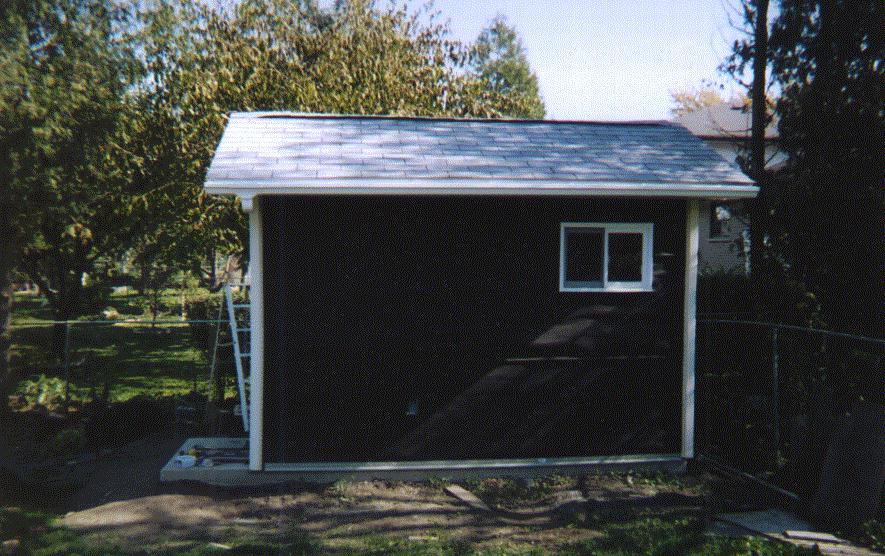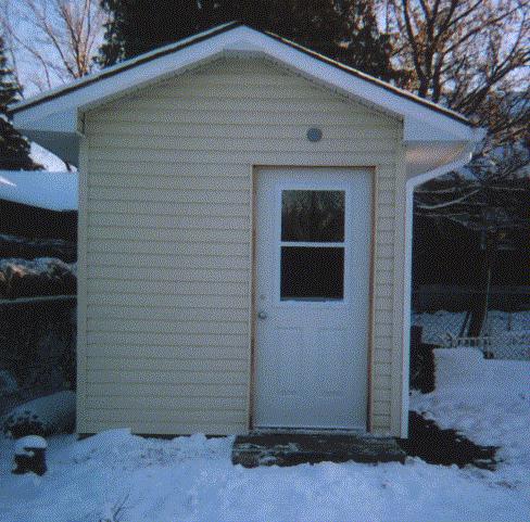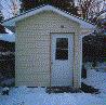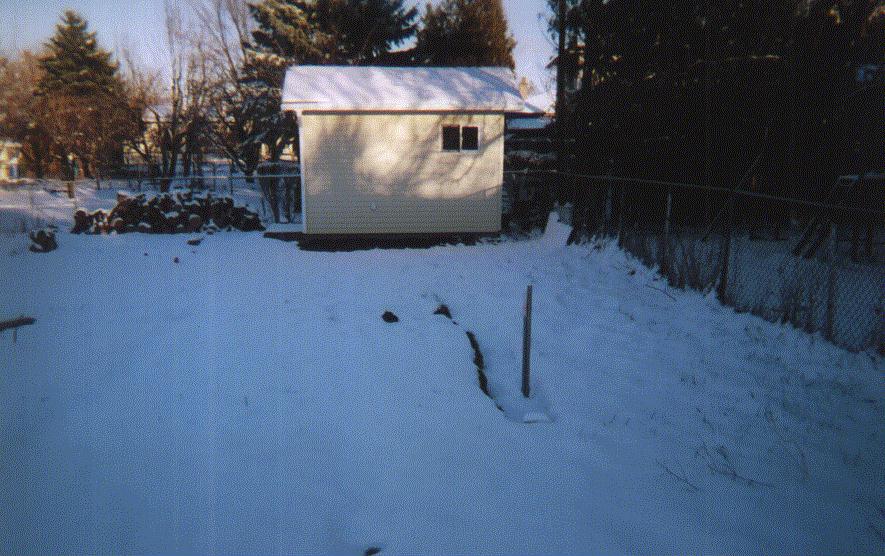 ![]() View of shed showing where electrical conduit surfaces for temporary service, December 15, 2001. |