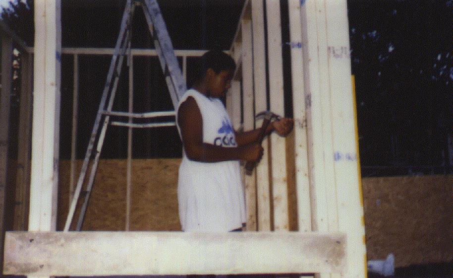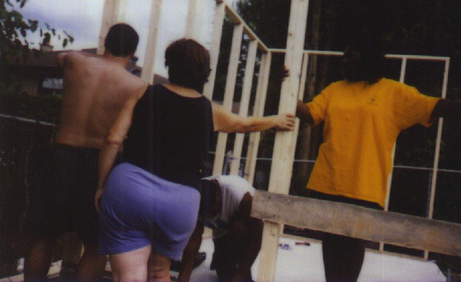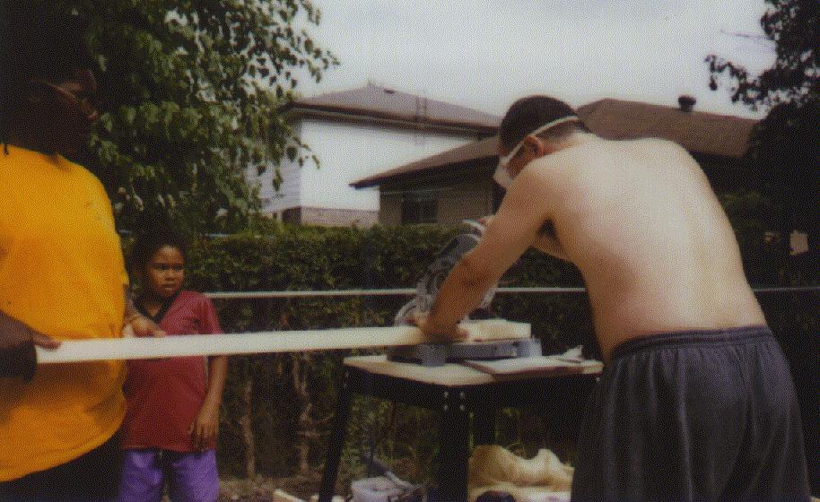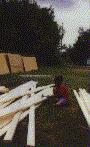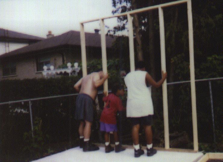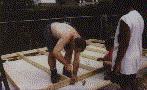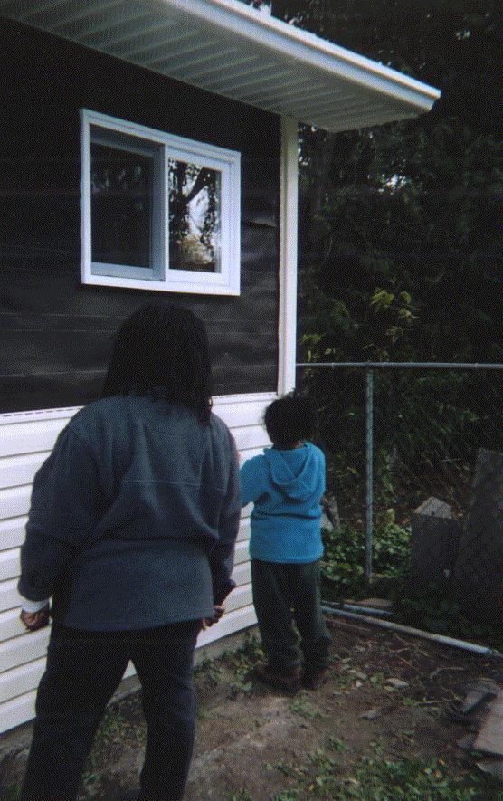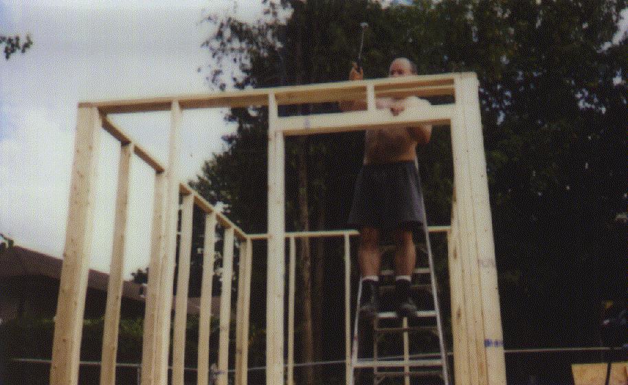 ![]() Starting siding - sheathed walls have corner posts attached. |