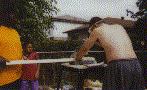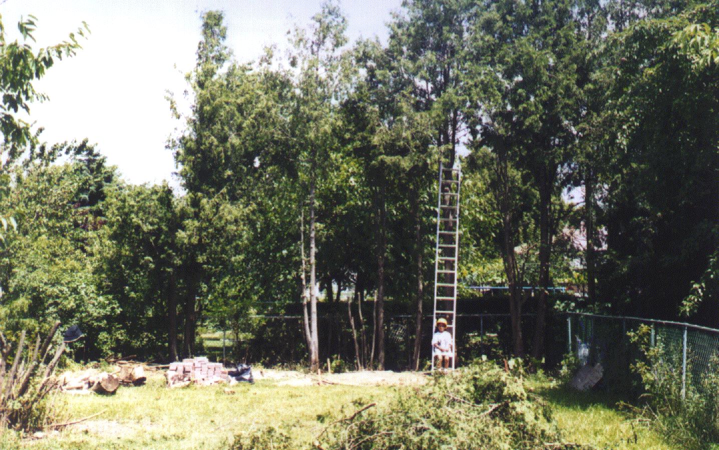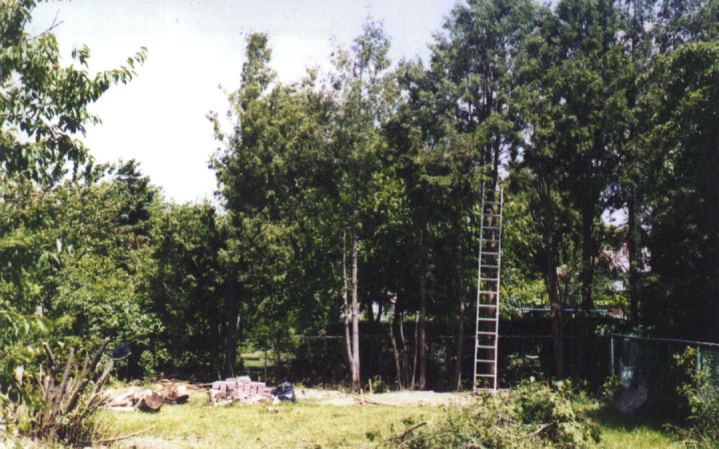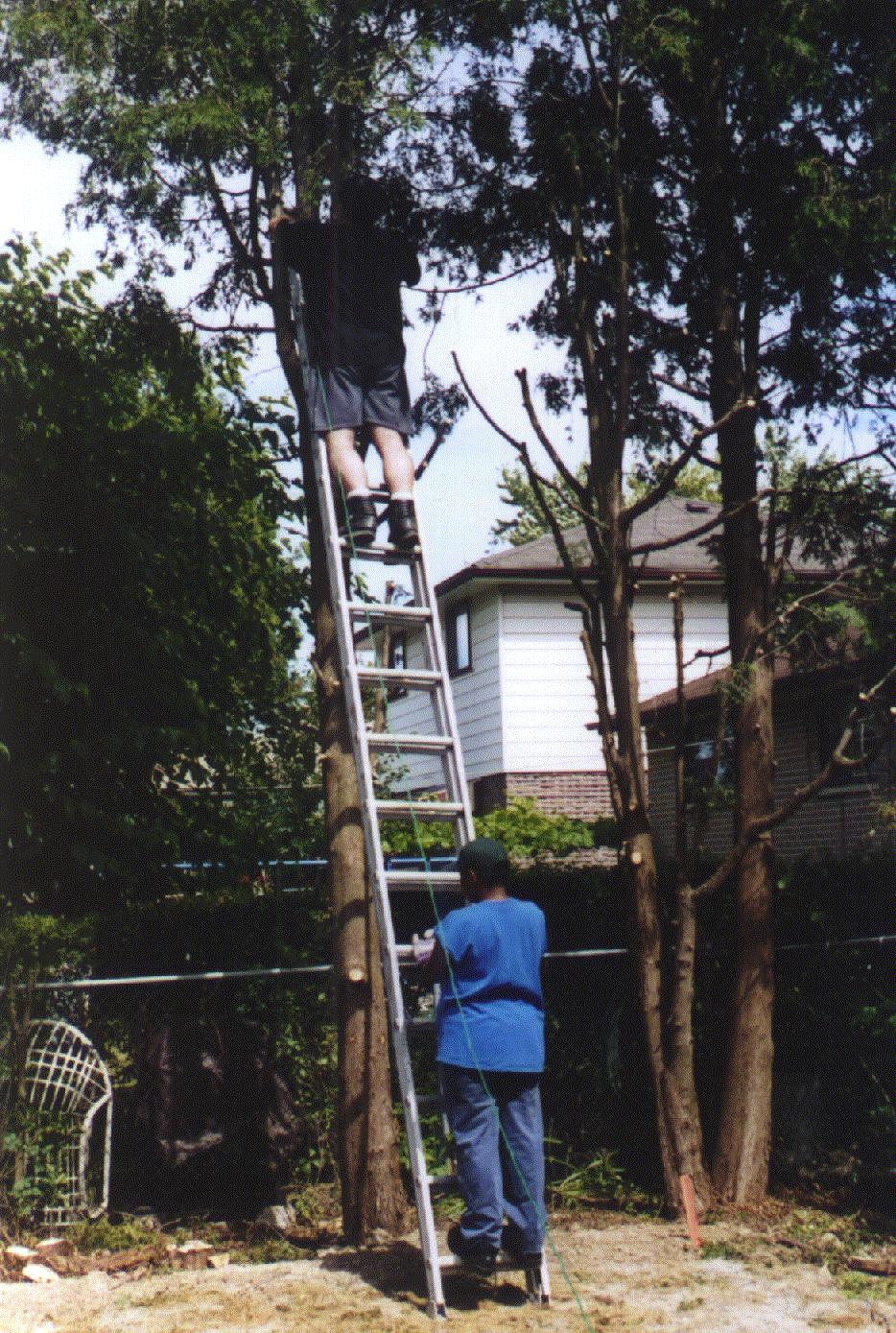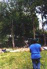 ![]() Preparing to cut down cedar trees where shed is to be located. |