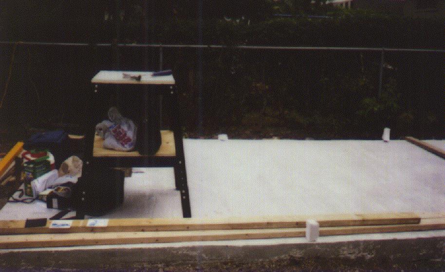 ![]() Concrete foundation, poured on August 5, ready for framing. |